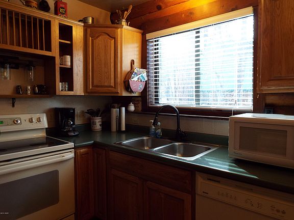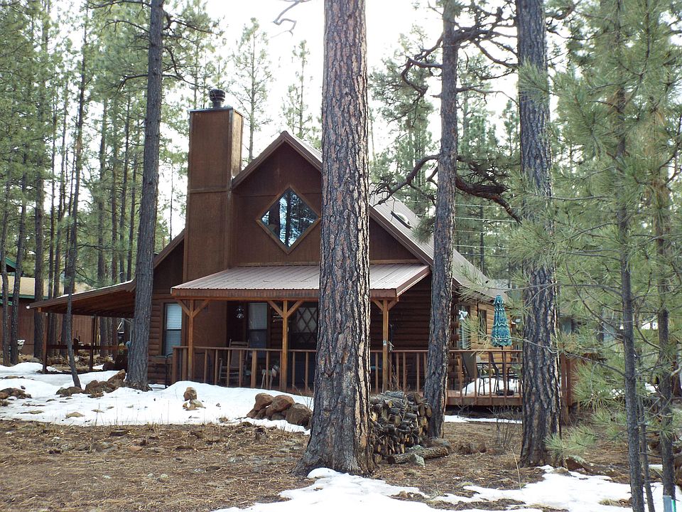 Real log cabin tucked in the tall pines. Enjoy covered front deck and balcony off master upstairs. Loft area with office setup that overlooks living area. Hardwood flooring in living room and kitchen, cabinets with pull-out drawers, fully fence for fur babies, includes membership to Pinetop Lakes Recreation Center.