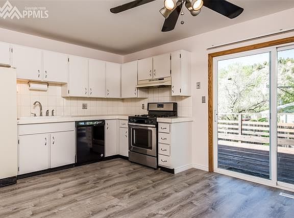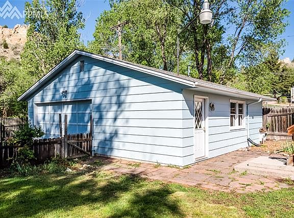 This 4 bedroom Pleasant Valley home has unique features hard to find. There are views of the bluffs behind the house, and you can walk/drive down the street to find the south trail entrance to Garden of the Gods! This property is surrounded by natural beauty! There is a 32x28 detached garage in the back yard. Big enough for 3 cars plus you still have space for a workshop AND attic storage! Park your RV on the S side of the garage. This home also offers a 5th bedroom or private office with a separate entrance. Great for visitors or if you need a home office. There is a gas stub on the back wall of this room. This could be convenient if you wanted to add gas in the back yard for a grill or a gas fire pit. The kitchen/dining area walks out to the private, peaceful backyard. There is a wood deck; or you can sit on the stone patio and roast marshmallows over the wood fire pit. There is a large gate with a concrete pad between the front and back yards. You do have access to the garage through an easement. The lower level also offers a spacious family room with a charming wood fireplace, 2 bedrooms and a bathroom. Newer furnace, new paint and carpet throughout, new vinyl wood plank floor in kitchen!