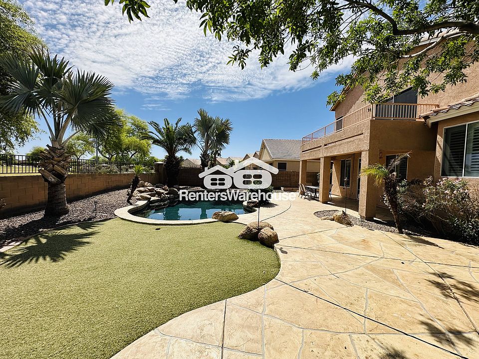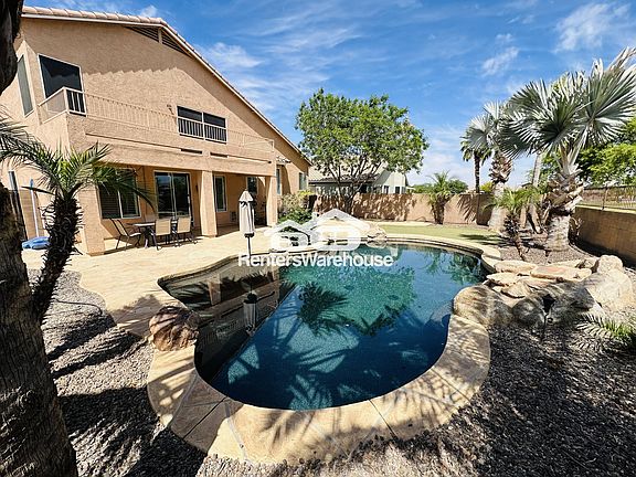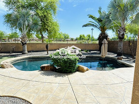 Exceptional tri-level solar home showcases breathtaking South Mountain views, premium location backing to a serene greenbelt with a neighborhood park at your doorstep. Interior boasts upscale finishes throughout, including soaring vaulted ceilings, elegant hardwood floors, and designer tile in kitchen and bathrooms. Thoughtfully designed floor plan offers plenty of room to relax with a private downstairs bedroom suite, family loft & bonus room. Expansive master suite features a private walkout balcony overlooking the sparkling pool and lush backyard oasis, creating the perfect retreat. Resort-style backyard paradise features a 13,000-gallon pool with custom water feature, surrounded by exotic landscaping including rare Bismarck palms. Monthly pool service included at no additional cost. State-of-the-art energy efficiency featuring brand new AC unit, new furnace, water softener, and solar system delivering significant utility savings year-round. Spacious 2-car garage equipped with custom built-in cabinets, providing organized storage solutions for tools, sports equipment, and additional household items. Ideally situated just 11 miles from Sky Harbor Airport, this move-in ready oasis combines convenience with luxury living perfect for both full-time residents or seasonal getaways.