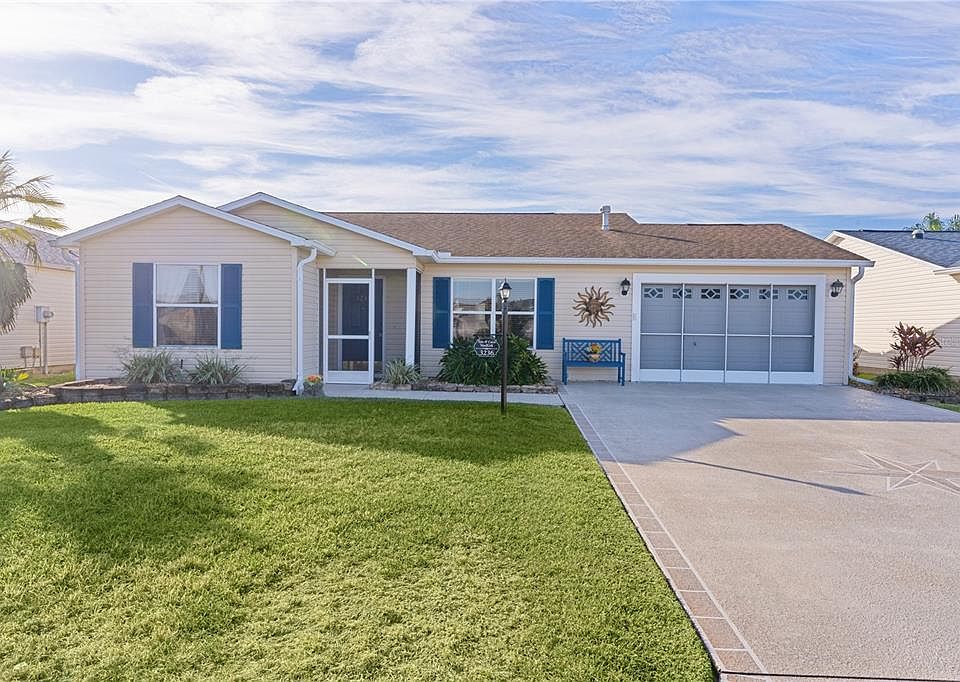 Turnkey and NO BOND! 3-Bedroom, 3-Bath Custom Ranch Home in the Village of Polo Ridge. This lovely home sits on a larger lot with possible room for a pool (with county approval). When you arrive, you'll notice the charming painted driveway and walkway beautifully complemented by lovely landscaping. The screened-in front porch offers a welcoming touch. Step inside to an open floor plan featuring knockdown ceilings and thoughtfully designed spaces. The first of the three bedrooms is located just off the entryway, offering a privacy door with a walk-in closet and access to a full guest bath complete with granite countertops and a tub/shower combo, ideal for visiting family or friends. The spacious living area flows seamlessly into the kitchen and dining room, making it perfect for entertaining. The kitchen boasts GRANITE countertops, a GAS stove, newer appliances, and a generously sized pantry. The dining area accommodates a large table, creating the perfect gathering setting. The primary suite features a large walk-in closet and an ensuite bath with granite countertops and a walk-in shower. At the rear of the home, the third bedroom offers another private sanctuary with an oversized walk-in closet and ensuite bath with granite counters and a shower. Enjoy Florida living in the Florida Room, complete with a convenient pass-through window to the kitchen. Adjacent to it, the enclosed lanai brings in plenty of natural light, while the spacious outdoor patio (installed in 2019) is perfect for grilling and relaxing under the sun. The garage is well-equipped with pull-down attic stairs, attic storage, and additional cabinets. Updates include a 2018 roof, 2019 HVAC system, and 2022 water heater, ensuring peace of mind for years to come. This home is just around the corner from Southern Trace, for shopping, offering several dining and retail options. The Polo Grounds, Saddlebrook Recreation, Laurel Manor Recreation Center, and medical offices are nearby. This home effortlessly blends convenience with comfort. Moreover, a mere 3.5 miles transport you to the vibrant heart of Lake Sumter Landing, a hub of entertainment and camaraderie. If nightlife is what you are looking for, this home is 3.5 miles away. Come see why this should be your next home!