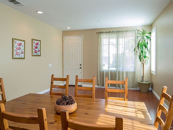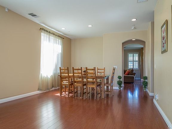 Beautiful turnkey home in a quiet small gated family community. Stepping into this gorgeous home you are greeted with dark laminate flooring that is throughout the downstairs. As you enter into the large living/dining room combination you will notice the high ceilings as well as the plantation shutters and large baseboards that are carried throughout the home. The half bath is next to the staircase before you go under the arched entry into the cozy family room with a fireplace. Across the room is the kitchen which has a walk in pantry and plenty of beautifully maintained white cupboards and overlooks the private yard with a greenbelt view. The laundry room that is attached to the kitchen is in a perfect location. Upstairs to your right is the master bedroom with en-suite that has double sinks, a shower and tub plus a large walk in closet. The three additional bedrooms are upstairs as well and are all roomy with ceilings fans in each. The additional bathroom has two sinks with a tub/shower combination. Out back you find your alumawood covered patio to enjoy your family gatherings. The gas hook up for your barbecue insures endless cooking. HVAC, whole-house fan for those hot days and solar powered system installed to help with electric costs. Call today to take a private tour of this stunning home!!