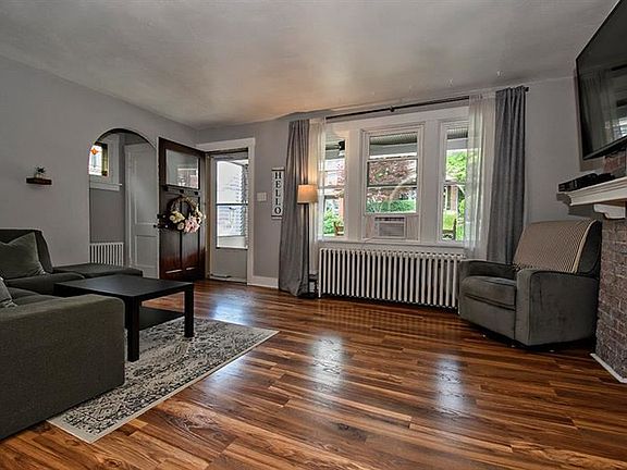 Amazing turn key home! All updated ! Large covered front porch.Interior all updated in today's most popular. Decorated in soft gray tones. Rounded archways! kitchen remodeled in 2019 w/white cabinets&quartz counter tops&stainless appliances.Extra wide stainless sink. Dining room opens to kitchen w/ bar area to enjoy your coffee at or to serve food on when entertaining. Door from kitchen to the deck. Fashionable laminate flooring in living room&dining room. 2 full baths!New windows in 2018. Stunning decorative fireplace highlights the living room. Dining room has wide rounded archway&2 sets of built ins. Oversized deck with steps to the rear yard. Large &level fenced in grounds. Sidewalks in neighborhood. Close to Rt. 19 shops& restaurants. Minutes from downtown Pittsburgh. Near "t" stop . Bus transportation available.