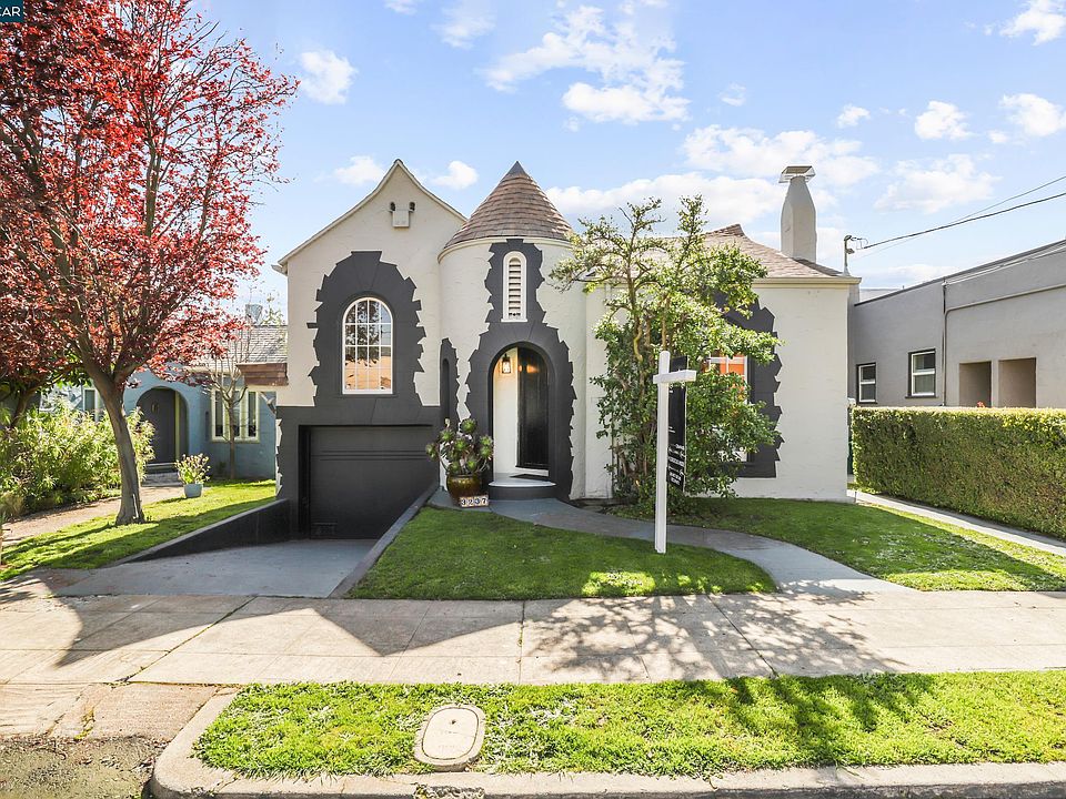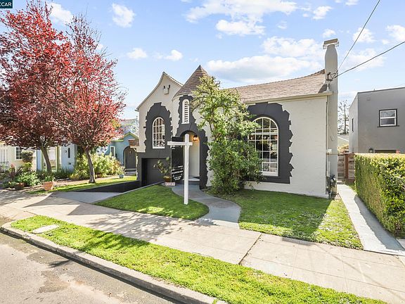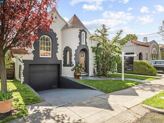 CHARMING + COZY French Normandy-Style SUPER CUTE Cottage! Vintage 1926 classic century old architecture with turret castle-like porch entry and speakeasy front door inviting you into the delightful living room with beautiful refinished hardwood floors, angled-sides coved ceiling and distinctive fireplace. Through the lovely archway is an easy for entertaining formal dining room with adjacent kitchen featuring new slate tile floors, new white quartz countertop, large stainless sink, stainless steel appliances and gourmet chef gas stove. Sunny eat-in breakfast nook with bay windows looking out to the grassy garden backyard. PLUS, a lower level BONUS ROOM/home office/guest space with sink. The oversized garage has a washer/dryer and can be an extra usable space with lots of storage, nooks and crannies. Sunny and spacious backyard with outdoor entertainment patio area has fruit trees, fenced in privacy with side gate; great for kids, pets and backyard BBQs! Refreshed kitchen and bathroom and sewer lateral clear! Well-cared for/maintained w/"GOOD BONES!" Located in a friendly neighborhood close to wonderful shops + restaurants in the Dimond District, Lower Laurel, Fruitvale. Easy commute via 580, 880, AC buses + BART. Write your next chapter in this STORYBOOK HOME, SWEET HOME!!