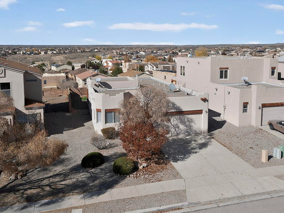BEAUTIFUL Southwest UPDATED SINGLE STORY, OFFERING 10k FLEX CASH, offers NO CARPET! NEW H20 HEATER! NEW HVAC! NEW PAINT THROUGH -OUT! NEW FIXTURES! NEW FLOORING! SOLID SURFACE COUNTERS separated primary from secondary rooms, nearly 50K improvements new EXTERIOR PAINT TRIM/STUCCO, NEW BY landscaping, front maintained by HOA. Close in RR, 1 minute to MAIN UNSER!Wonderful community OF parks & trails nearby & stone throw from UNM Sandoval, EZ maintenance landscaping beautiful fireplace & space for electronics & misc. Eat in kt area & formal dining area in great room. Large family room with elevated ceilings, separated door entrance to primary. BACK YARD IS OPEN TO WEST MESA! HURRY & SEE THIS FUNCTIONAL SLANT (RAYLEE) MODEL! ENJOY THE SUNSETS & STARS NIGHTLY ! Move -in READY!