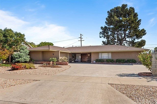 This great property is just waiting for a new owner to put their personal touches on it. The Sellers are looking forward to their next chapter but are leaving this 3 Bedroom 2 Bath Single Level home ready to welcome someone new. Situated in Gainsborough North neighborhood in a great location in the city of Orange. A corner lot, extra large driveway and additional side parking and generous sized front and back yard. A lovely front porch and beautiful wooden double doors greet you. A formal living room and dining room. The living room features a fireplace with mantle and brick hearth. High beamed ceilings make an architectural statement and are a focal point of the room. Wood flooring in the entry, family and dining room. This home gets lots of natural light which adds to its warmth. The kitchen features a very practical floor plan, right off the family room, dining room and has a side door to the backyard. Two nice sized secondary bedrooms and a large master and bath. The second full bath features shower and tub combo. Pretty wood toned vanity with granite counter top. The front and back yards are currently landscaped with low maintenance greenery and hardscape. The backyard features a covered patio and plenty of deck space for entertaining large gatherings or just a few. An indoor laundry room with a practical utility sink. Two car garage with roll up door. Nearby schools, restaurants, shopping and freeway access. WELCOME HOME!