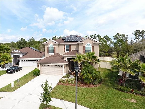 ABSOLUTELY STUNNING & STATELY! This gorgeous SOLAR POWERED HOME FEATURES A SALTWATER/HYBRID HEATED POOL & SPILL OVER SPA, OVER SIZED PIE SHAPED LOT, CUSTOM BLIND PACKAGE, UPGRADED LIGHTING, 3 CAR TANDEM GARAGE AND SO MUCH MORE! Etched, leaded glass door welcomes you into large foyer and grand formal dining & living spaces. Flooded with natural light you'll enjoy SPACIOUS GREAT ROOM OPENING TO LARGE KITCHEN WITH ISLAND, BREAKFAST BAR & GENEROUS EAT-IN SPACE TOO! DOWNSTAIRS GUEST ROOM & POOL BATH is perfectly placed. Upstairs you'll enjoy a sweet loft space, perfect for quiet reading or studying and then BLOWN AWAY by the size of your BONUS ROOM! GRAND MASTER W/ TRAY CEILING & large bath FEATURING SUPER SHOWER. 3 additional bedrooms & guest bath complete the interior, but let's head outside!! YOU'LL BE ON VACATION WITH THIS RESORT STYLE OASIS!! OUTDOOR KITCHEN, TRAVERTINE POOL DECKING, FIRE PIT, VINYL FENCING & ENDLESS GREEN SPACE CREATES PRIVACY, SERENITY AND A LIFETIME OF MAKING MEMORIES!
