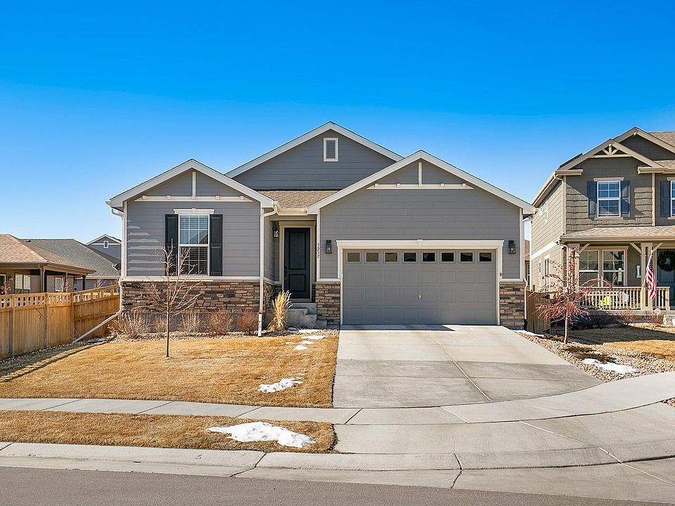 ***OPEN HOUSE SATURDAY 2/23 11am-1pm*** Stunning contemporary 3 bd/2 ba ranch home just 30 min from Boulder and Denver! Welcome to a bright and ample open layout enjoying upgraded wood flooring extending throughout, 9'ft ceilings, cozy fireplace and inviting chef's kitchen. White shaker cabinets, granite slab countertops, large center island, stainless steel appliances, and pantry. Professionally landscaped yard with covered deck, large paver patio, pergola, and firepit for year-round entertaining. Master retreat boasts a spa-inspired bath with large walk-in shower and dual vanity. Completing this impressive layout are two more generously sized guest bedrooms, full guest bath and a light-filled home office with front yard views. The unfinished basement is ready to be personalized or utilized for storage. Must see!