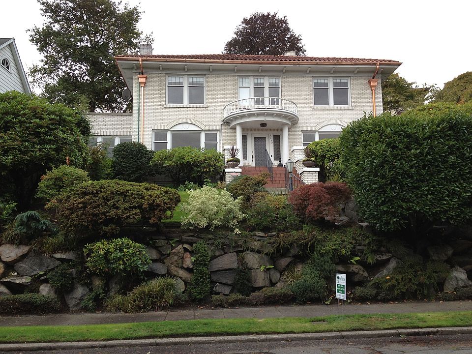At last! Homes like this beauty are the reason people choose the understated elegance of Mount Baker. Set high on one of the most coveted streets, this stunning 1924 center-hall, renaissance-style home has the spacious grandeur and classic details of a larger estate, yet is perfectly proportioned and updated for today's busy lifestyle. Sweeping 180-degree views of Lake Washington stretch uninterrupted from Mt. Rainier to Mt. Baker. As you ascend the winding staircase, a canopy of Rhododendron opens to abundant gardens. The lush, layered landscaping is carefully designed to provide optimal beauty and privacy for this unique street-to-street property. Past the classic portico entrance, step inside and notice the sunlight. It's everywhere. Gorgeous, tall, leaded-glass French windows line every room and fill the entire house with sunshine and airy lightness. The impressive grand entry, with central staircase and wainscoting, stands at the center of the circular floor plan, while inlaid wood floors complement the finely-designed details throughout the house. The expansive formal living room, with Batchelder-tiled fireplace, spans the width of the home and has large, triptych-style windows on both sides. The south and east facing Sunroom, with wall-to-wall wrap-around windows, has been used for everything from a quiet reading retreat to a dazzling martini room for party guests - and everything in between. The wainscoted, formal dining room has a beautiful simplicity and symmetry, and with the kitchen just steps beyond, it feels right for any size gathering - whether it's just family or a large dinner party. The bright and beautifully updated kitchen features granite countertops, stainless steel appliances, and an adorable, 3-sided breakfast nook wrapped in windows and large enough for friends - definitely "Sunday brunch" worthy! Rounding out the main level is an exquisite powder room bathed in Carrera tile, intricate marble flooring, and a pedestal sink with black granite countertop and crystal legs. . Upstairs, the east-facing master suite is fronted by windows and has gorgeous views of Lake Washington, Andrews Bay, and the Bellevue skyline. A large, private dressing room with built-in closets also has large windows, beautiful lake views, and a Juliet balcony. A smaller dressing area, featuring built-ins and a view window, leads to the master bath with original period tile, a deep tub, original millwork, and pedestal sink. The second bedroom also has large windows with beautiful views, but as incredible as the view seemed from inside, once you walk out the side French door, your huge, private, outdoor deck provides a panorama of lake and mountain views as far as the eye can see. The third bedroom has big windows with pretty, west-facing views. The second floor bathroom has original period tile, pedestal sink, and original millwork. The massive, full-height lower level has beautiful, large, sun-filled windows and extensive wainscoting, millwork, and built-ins. There is a large media room with fireplace, guest quarters, a large laundry/utility room, and endless storage. Don't miss the unassuming door that leads to a full-height underground tunnel - that leads to a staircase - that descends into a cavernous, L-Shaped underground garage with plenty of space for two cars, every project imaginable, and again, endless storage. A garage door provides access to the street. The back of the property has a beautiful staircase that winds through a grassy knoll and ends at a lovely back portico with traditional entrance. Slate paths, carefully selected ornamental trees and shrubs, delightful plantings, and side fencing provide privacy and beautifully finish this rare property.
