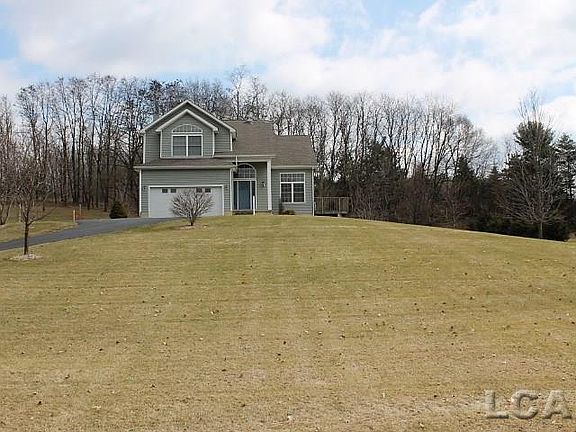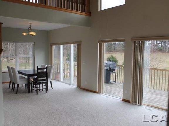Elegance & warmth exude from this exceptionally maintained 2004, 1 1/2 story home on 1.84 acres. Cathedral ceiling foyer with glimpse of upstairs opens to formal living and dining rooms that are surrounded by windows with an exterior balcony. Eat in kitchen with bay window, stainless steel appliances, breakfast bar and a doorwall to the spacious deck. Located off the kitchen is a family room with gas fireplace and wired for surround sound. 1st fl laundry and half bath directly off garage . Second floor with 3 bedrooms, lofted area (can easily be converted into a 4th bedroom) & 2 full baths including large private master. Double sinks in both baths. Walk out to private retreat with patio, play structure, 4 dwarfed apple trees, cherry trees, asparagus patch and raspberries.
