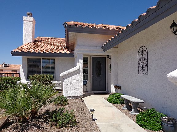 Designer Delightful! Beautifully updated 3 bedroom 2 bath home in El Mirage Park. Tile flooring through out, 2 tone paint, great room w/fireplace updated new island kitchen, granite, custom features throughout. Stainless appliances, bathrooms updated with beautiful fixtures, covered patio, deck flooring, SWIM SPA, gorgeous landscaping with desert theme. RV parking, hookups, furniture is negotiable. Built in 1988, No HOA!