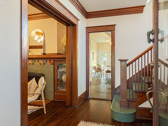 Classic features fill this graceful Irvington 4-Square. Perfectly located on a tree lined street w/ walkable access to shops & restaurants nearby. The covered front porch leads to the formal entry w/convenient coat closet & original built-in bench storage. Light streams in the original oversized windows which offer views of lush plantings. Newly refin. HW floors complement the classic trim & fresh paint on this level. Original pocket doors lead to the formal Living Room w/vintage lighting & wood fireplace. Original bi-fold doors welcome you to the generous Dining Room, perfect for holiday gatherings. A quaint Music Room could be a charming Home Office. The spacious kitchen boasts abundant storage, a charming nook, island breakfast bar and updated paint & lighting. French doors lead from the kitchen to a welcoming back porch, the perfect spot for morning coffee. A full bath w/ walk-in shower completes this level. Upstairs the hallway features original built-ins and leads to 4 large bedrooms, all w/gorgeous, newly refinished wood floors. The sunny Primary BR boasts 2 walls of double pane windows, w/lovely garden views & roomy double closets. The 2nd BR upstairs features original built-ins and could be used as a BR, Home Office or even a cozy Family Room. The 3rd & 4th BR's are generous sized rooms w/oversized windows & walk-in closets. The hall bath upstairs features a classic clawfoot tub & pedestal sink, charming as-is or update to your liking. The Laundry niche in upstairs hall bath makes for convenient access. Bring your vision to the unfinished basement. Exterior access & good ceiling height provide potential for expansion or ADU (Buyer to perform due diligence). Gorgeous, private, gardener’s yard has been thoughtfully planted. Updates: Furnace, HW Htr, Plumbing, Decomm. Oil Tank, Int. & Ext. Paint, Refin. Wood Flrs, Newer DW & WA/DRY. See Features/Updates List. Enough updates to move right in, this beauty is ready for someone to take her to the next level! [Home Energy Score = 2. HES Report at https://rpt.greenbuildingregistry.com/hes/OR10233073]