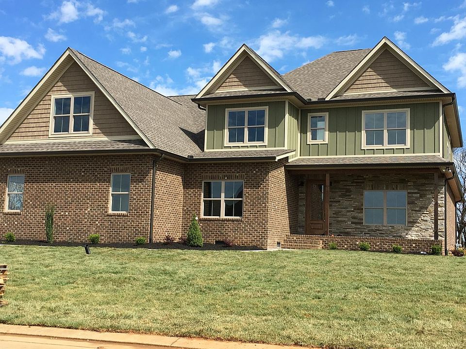 This brand new Brick stone beauty offers 4400 sq ft +/- and has outstanding pastoral views from the large rear patio. Amenities include top Whirlpool 5 burner natural gas range, microwave, stainless steel hood, dishwasher and disposal, ship lap above the stone fireplace that reaches to the crown molding, master suite and second bedroom with private baths ensuite are located on the main floor. Formal dining room or office, open floor plan with large granite island, white shaker cabinets, granite counter tops in kitchen, butlers pantry, large master closet with private door to the laundry room, mud room, beautiful hardwood floors in master,living and bonus rooms. Family room upstairs is carpeted along with two more bedrooms, walk in closets. french doors to covered back deck. Don't wait!