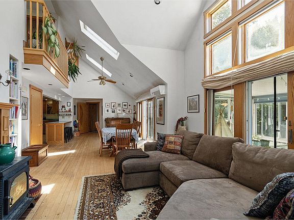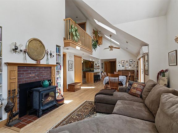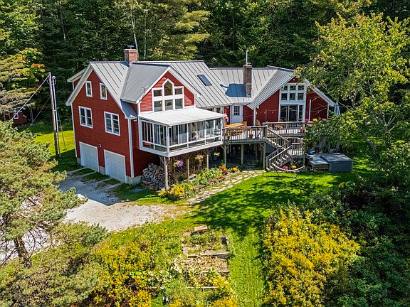 This incredible 5-bedroom home sits on over 9 acres that backs up to the Green Mountain National Forest, making it a nature oasis. The sellers have carved out trails for hiking & skiing, installed solar panels, upgraded the generator, installed mini-splits & a Tesla charger. The layout creates endless possibilities. Entering from the mudroom you can go into the main part of the house with cathedral ceilings over the main living area, a bright and spacious eat-in kitchen, and a first floor bedroom and full bath. The first floor as beautiful wood flooring, a cozy fireplace, and large windows inviting in the sun. Multiple access points to the outdoor spaces including a sunroom and a large multi-level deck with a hot tub. This half of the home has a staircase that offers access to two more bedrooms and another bath as well as attic storage. Returning to the mudroom you'll find first-floor laundry and access to the other half of the house with 2 first-floor bedrooms and a full bath. There is a stunning living space here with another wood stove and a partial kitchen space making this an ideal area for entertaining. There is a 3rd bedroom in the loft and access directly out to the deck. This home has no lack of storage, with direct entry from outside or 2 access points inside the basement boasting over 2000/ft of workshop space. Additionally, there is an attached 2-car garage, storage shed, gardens, and a chicken coop! Open house on Sunday, September 8th from 12-2pm!
