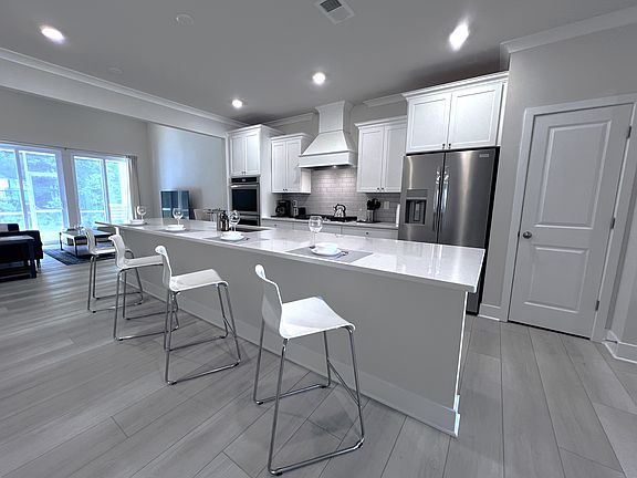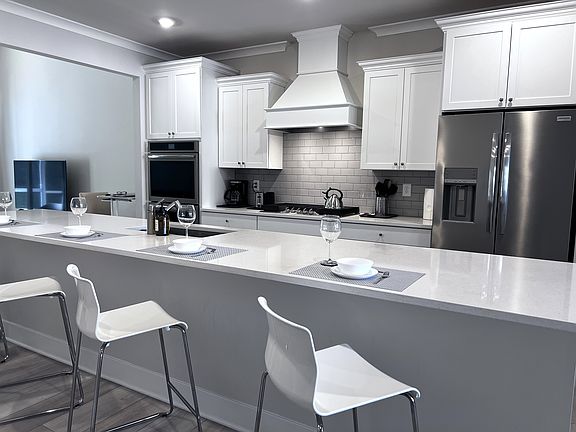 Fully stocked with high-end appliances including a built-in double oven, gas cooktop, microwave, and refrigerator with water dispenser and icemaker. Bonus: a stunning 15-foot white quartz island perfect for entertaining.