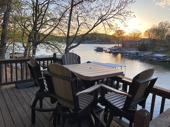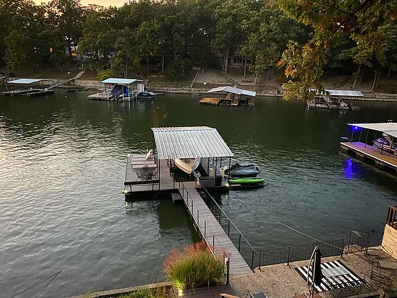 Beautiful lake retreat located at the 7 MM. This 4 bedroom, 2 bath house is fully furnished. There are 3 bedrooms (2 with king beds, 1 with two full beds) and 2 full baths located upstairs and 1 bedroom (1 king bed) located downstairs. The downstairs also has a separate living area with views of the lake. There are multiple outdoor seating areas with great views as well. The house has 90 feet of shoreline and is located in a quiet, deep water cove, but just around the corner from the main channel. There is a one-well dock with a 25 foot slip and lift, along with a ride-on/ride-off wave-runner lift. The house is conveniently located off of O Road and close to all of the lake hotspots by water. Paved roads to the home. Minimum 12 month rental agreement. Monthly rent includes water, sewer, trash service and seasonal pest control. Renters are responsible for electric, WiFi, and rental insurance.
