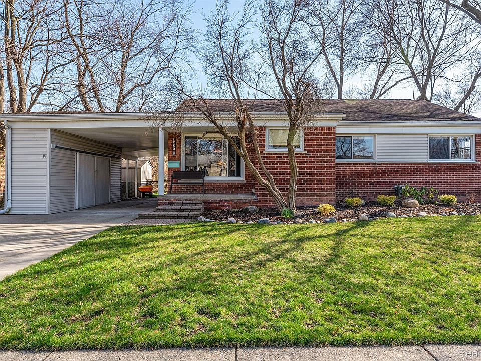 Welcome home! This walk to downtown Farmington quaint brick ranch invites you into an open floorplan, complete with a living room, dining area, updated kitchen, and a huge great room with a fireplace overlooking a private, fenced in yard. There are beautiful hardwoods throughout and 3 spacious, light-filled bedrooms. The basement has been finished to include a laundry area, rec space and an additional full bath. Outside, you’ll love the huge deck and additional storage spaces. The carport features a lot of storage as well. You don't see walkable ranches often, so don’t wait on this one, call today!