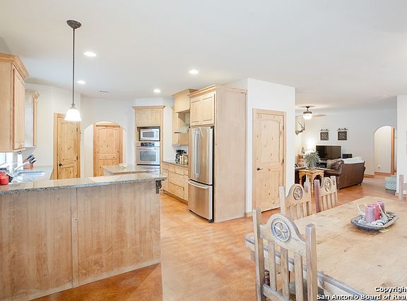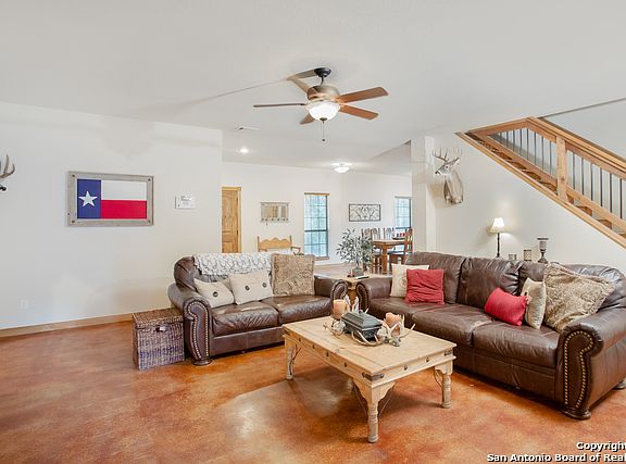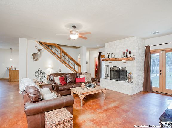 Come see this beautiful hill country 1.5 story home! Nestled within mature trees on a total of 1.84 acres, this home offers an open-floor plan with a spacious living room and stone fireplace. Enjoy your entertainers dream kitchen with a lovely island & double oven. There is beautiful granite in the kitchen & all bathrooms, no carpet, and sleek stained concrete/wood floors throughout. This home features an over-sized master bedroom/bathroom, two guest rooms, and a bonus room/game room. This home has it all!