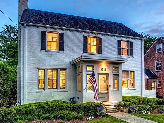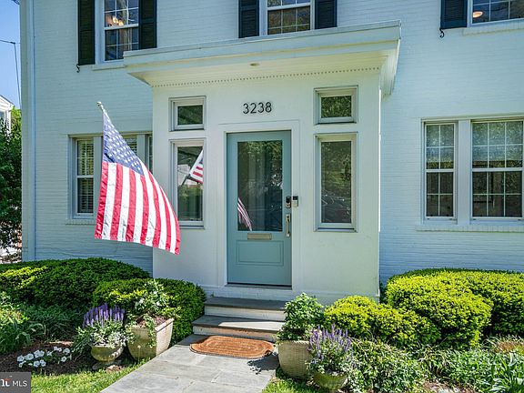 OPEN TOMORROW SAT., 1/27 FROM 2-4:00 P.M. Designer details and finishes are found at every turn in this classic and timeless white brick colonial. Sited on a 1/4-acre grassy and deep lot in the sought-after neighborhood of Chevy Chase DC, this well maintained home has recently been renovated and is truly move-in ready. A charming blue door beckons you inside this entertainer's dream with crown moldings, high ceilings, custom built-ins, bespoke window treatments, and on-trend lighting. The functional and pretty portico / mudroom leads into a gracious and welcoming foyer with gleaming hardwoods that open to the main floor's ideal and flexible floor plan -- a grand living room with a wood-burning fireplace, original mantle and custom wood built-in bookshelves with custom lighting -- that flows to a cheery, windowed play room or an ideal space for a family room overlooking the expansive and lush rear yard. The formal dining room leads into the white chef's kitchen with stainless steel appliances and a breakfast table with seating and egress to the herb garden. The main floor office has two custom-crafted built-in desks, file drawers and bookshelves with library lighting, and a wallpapered powder room that delights. Up the stairs with a custom runner you arrive on the second floor landing; there is a large bedroom with two closets, another bedroom with its own private patio -- an ideal spot for star gazing or enjoying morning coffee -- a renovated hall bath with wallpaper and Carrara marble, and the private and light filled tree-top primary retreat with an en suite bath and a walk-in closet. The third floor has a carpeted bedroom and a bonus room currently used as a dreamy walk-in dressing room but can be re-envisioned as a bathroom, den or additional bedroom. The light-filled lower level has a nice-sized foyer that leads to supremely flexible space -- use as the fifth bedroom ideal for an au pair, guests or in laws -- or use that large space as a family or great room with the stone fireplace, ideal for movie night. The full bath was just renovated with a navy & marble vanity and warm brass accents; there is a thoughtfully designed laundry area with high-efficiency machines and folding station, a home gym zone, storage galore, and rear egress to a stone patio for entertaining and al fresco dining under the twinkly string lights. There is also easy interior access to the attached 1-car garage and EV-car charger hook up from the lower level. Located in upper northwest DC in the welcoming and leafy neighborhood of Chevy Chase DC just a quick 25-minute trip downtown with easy access to commuter routes -- I-495, 16th Street, Connecticut Avenue, and Beach Drive. Bucolic with tree-lined lanes, the community abuts Rock Creek Park, a scenic oasis of wildlife and natural landscapes with extensive walking and biking paths. Uniquely located close to trailheads and parks in both Maryland and DC: Shepherd Park, Candy Cane Park and Lafayette Park with numerous tennis and basketball courts, playgrounds, stables, and more. Close to the neighborhood gems like the Brookville Market and Broad Branch Market and boutiques, shopping, sidewalk dining, and all the conveniences of Friendship Heights, Connecticut Ave. corridor, Chevy Chase, and Bethesda. In bounds for blue ribbon Lafayette Elementary School, Deal Middle School and Jackson-Reed High School. Welcome Home!