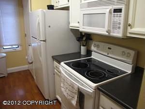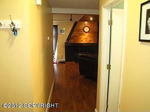 Very delightful end unit! Handmade mantle sits above rock fireplace; New Paint, hot water heater and laminate flooring; Kitchen has been completely updated with newer appliance; All appliances stay! Deck off dining area leads to fenced back yard; Close to schools, military installations, UAA shopping, etc; Definitely move in ready!