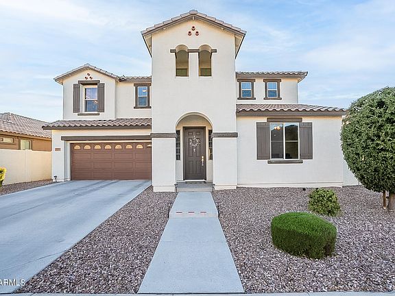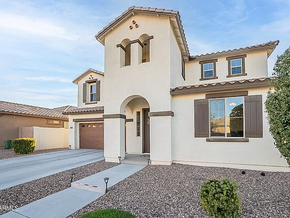 This wonderful 4 bedroom, 3 bath home is nestled in the desirable Lehi Crossing gated community. As you enter the home you are greeted with wood plank tile flooring, vaulted ceilings, a beautiful staircase, an open-concept floor plan and tons of natural light. The kitchen features beautiful, upgraded cabinetry, a large kitchen island, stainless steel appliances, upgraded granite countertops and backsplash. The family room boasts gorgeous multi-sliding glass doors that open to an extended covered patio and a sparkling pool with a color-changing light and removable fence. The 4th bedroom and a full bath are located on the main level. Upstairs you will find 3 bedrooms, 2 more baths and a large loft. The main retreat is bright and spacious with a private bath featuring dual sinks, a separate tub and shower and a walk-in closet. This energy-efficient home also comes with programmable thermostats and an electric vehicle charging outlet in the garage. The community includes biking paths and a playground and is conveniently located near the 202 freeway, restaurants, shopping and quick access to the airport and surrounding cities.