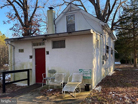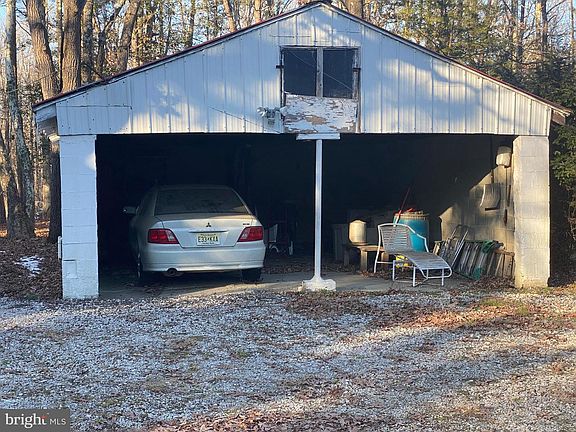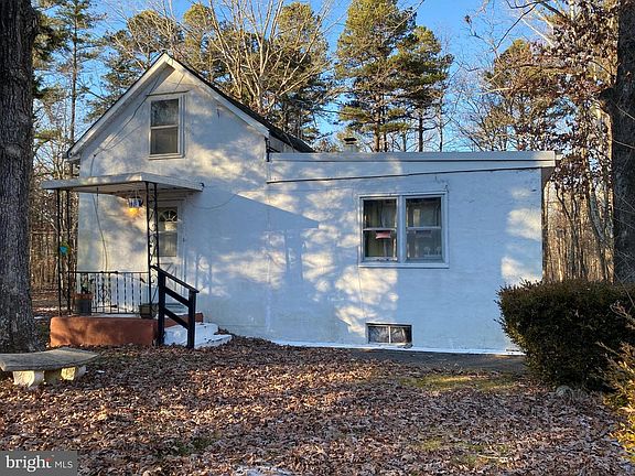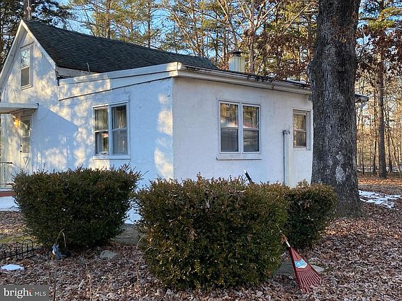 VALUE is in the LAND. Cinder block House needs a TOTAL REHAB or TEAR-DOWN. Built in 1912. 2 Car Garage needs work. Oil Fired Baseboard heat with one tank in basement and one in Garage. Electric and well already there. House has CESSPOOL. 844 feet of road frontage on Blue Bell Rd. Most of the value is in the Land Parcel, mostly wooded with clearing in the middle. ZONED PRR which is Pinelands Rural Residential . Zoning permits 1 LOT per 3.4 acres. Subdivision and well and septic would be required for any new construction. BUILD your own home with PRIVACY or subdivide for future investment. 844 Ft. Road Frontage. 23.85 acres starts with 844x1363x1182x760. Being sold completely AS-IS with Buyer responsible for any and all Inspections and due diligence for all issues.BEWARE of HUNTERS if you walk the Property. There is State land behind it and they sometimes crossover.