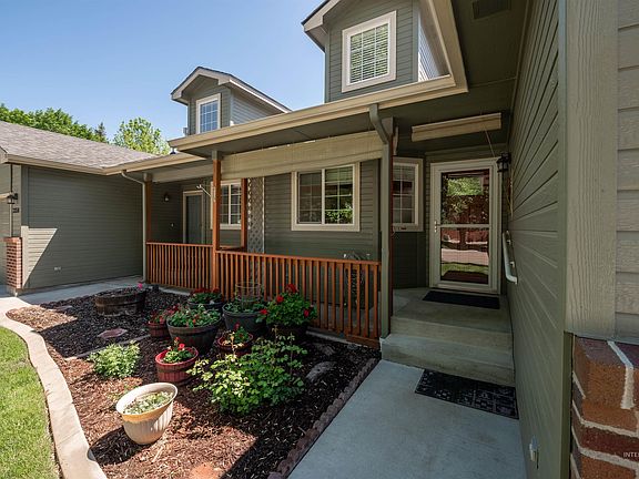 Welcome home to this charming, single level townhome in West Boise. Relax on your covered front porch or on your back covered patio. Corner lot with 2 sheds and low maintenance yard maintained by the HOA. Full vinyl fencing and automatic sprinklers. Light and bright interior features open floor plan, vaulted ceilings and gas fireplace. Primary suite has walk in closet and bathroom. Newer furnace, AC and water heater. Great location close to restaurants and shopping.