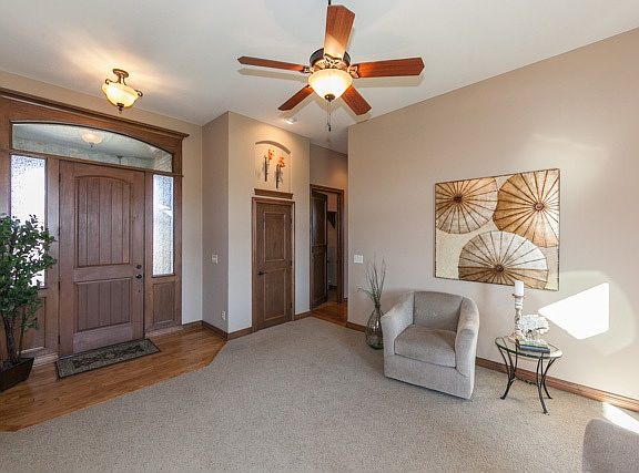 An absolute 10! This delightful home is in tip-top shape and shows like a model. With nearly 4,000 total finished square feet, 5 bedrooms and 3 baths, there is plenty of room for all your needs. Enjoy a spacious main floor with a split bedroom design. A perfect sitting area greets you from the entrance while large windows soak the space with natural light. Whether entertaining or just hanging with loved ones, the hearth room offers great access to the kitchen and dining space and boasts custom hickory hardwood flooring, gas fireplace, and beautiful built-ins. The kitchen features granite counters, eating bar, wonderful cabinet storage, double ovens, stainless appliances, and walk-in pantry. Your master suite is spacious offering deck access and a great en-suite bath with granite vanities, separate tub and shower, and a huge walk-in closet with direct access to the laundry room! Two sizable guest bedrooms and full guest bathroom round out the main floor. Deck access can be found just off the hearth room. The deck is covered with eastern exposure and offers all the room you need for outdoor furniture. A large lower level incudes a cozy family room with view out windows, built-ins, gas fireplace, and an inviting wet bar making it a great space for hosting friends and family. Two guest bedrooms and full bath are also available along with a separate recreation space that works well for game tables or possibly a media room. A bonus space just off the wet-bar could be a future wine room or just extra storage. The outdoor space has been meticulously maintained offering manicured landscaping, sprinkler system, irrigation well, and room to run and play! Don't miss your opportunity here. They don't come any nicer!
