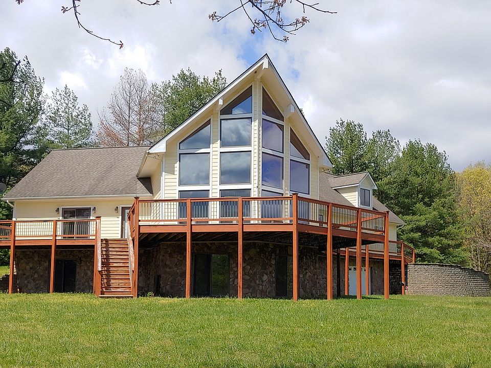 Nature's Paradise in the heart of the Blue Ridge Mountains with spectacular panoramic views. Located halfway between Roanoke Airport and Virginia Tech. This rural setting has amazing high-speed internet with fiber optic option. Great cellular service. Entertainment options both indoor and outdoor. 24 ft. Cathedral ceilings in great room with mountain views also visible from loft. Theater in main area with 168-inch screen, 4k laser projector to convey. 4 bedrooms with rec room potential of becoming 5th bedroom. Wrap around deck with LED lights with hot tub off master suite. Home office on main level offers exterior entrance to deck. Heated floor in Master and main level bathrooms. Walk out unfinished basement is ready for drywall. Never run out of hot water with 2 water heater system. Two separate double car garages. Rare opportunity to own a quality construction, custom built home in the New River Valley with million-dollar views.