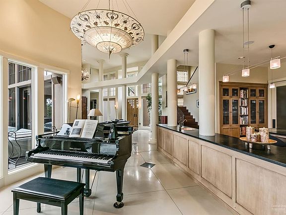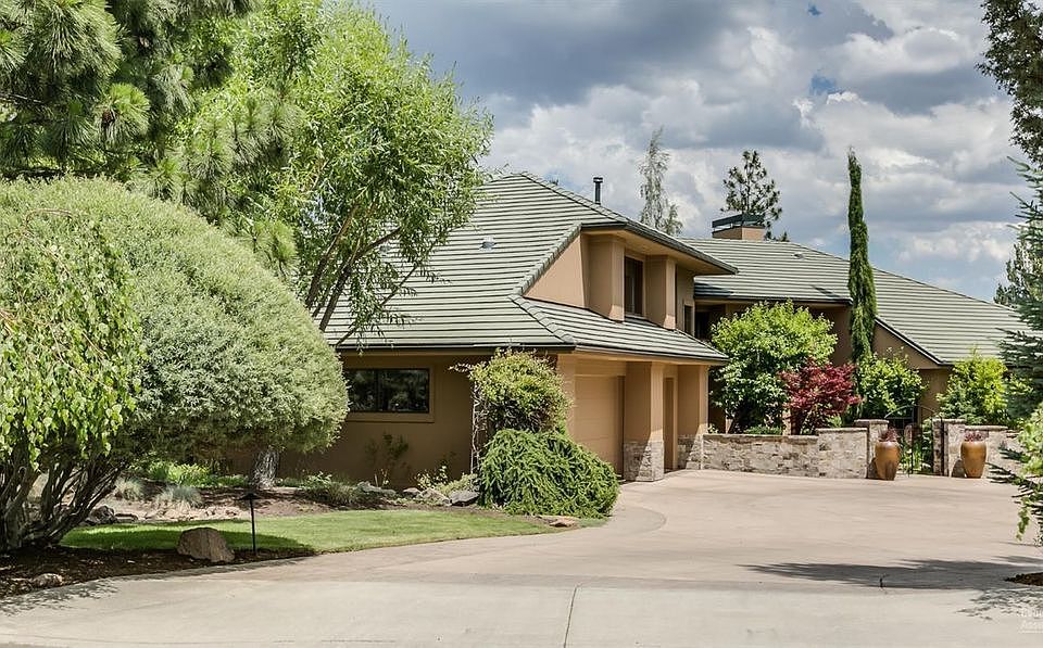 Elegant Awbrey Butte residence, light & bright with expansive NE Mountain & City Views. A large flat driveway off a quiet cul-de-sac & tile roof are stand out features for the Awbrey Butte neighborhood. Expansive Northerly, Cascade Mountain, Smith Rock and twinkling lights City views. Impressive Chef's kitchen with new Thermador SS Appliances, gas fired bread/pizza oven, double islands, tons of custom cabinetry, storage & a restaurant style pantry. With the Main level master suite & private office, this home lives like a one level with no stairs at the entry or from the garage. Upstairs are 2 bedrooms, full bath and a library loft. Downstairs is the Guest bedroom, a true theater room & the temperature controlled 3800+ bottle wine cellar. South facing indoor garden brings light & nature inside year round. Extensive outdoor living spaces with multiple stone patios & water features, beautifully landscaped & lighted- especially usable in the summer months with relief from the Western sun.