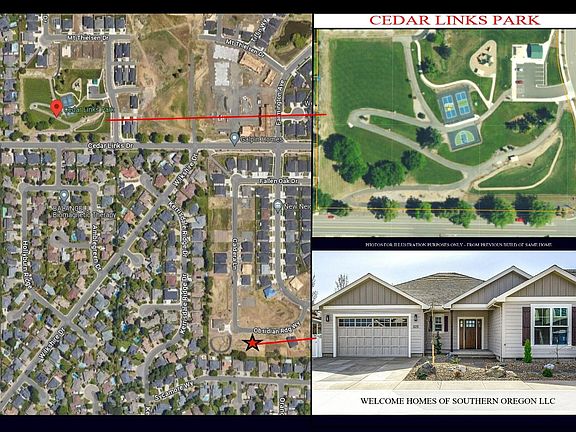 New quality built (4) bedroom single level home with (3) car stacked garage/shop. Located on a .19-acre lot, in desirable High Cedars Sub. Gorgeous 2,133' sqft home with open & spacious floor plan, great room design with stepped up to 11' ceiling, gas log fireplace with potential for optional custom built-in cabinets, covered patio access, incredible master suite w/walk-in closet & double vanity/sinks, custom kitchen with large pantry, & large island w/breakfast bar. Attention to detail takes center stage with delightful finishing touches throughout. The well-crafted interior includes granite counters, hardwood, quality carpet, & tile floors, gas log fireplace, stainless steel appliances, gas range/oven, nice utility room, and much more. Genuine regard for quality, creative excellence and value will make this Welcome Homes of Southern Oregon a solid investment for generations to come.