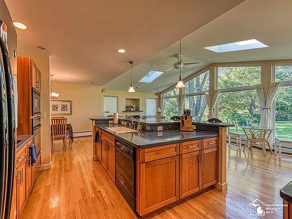 Beautiful Riverfront Setting! Brick ranch with family room & kitchen looking at the River Raisin through a wall of windows! Open kitchen with upgraded amenities, built in appliances & entertaining island. Hardwood floors throughout entire home. Wet plaster walls & ceilings in original part of the home. Main bath has been completely renovated. Spacious 22x30 attached garage & a full basement. Rear yard feels like a vacation spot! Enjoy riverfront life: fishing, kayaking, fires by the water....