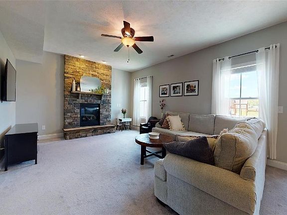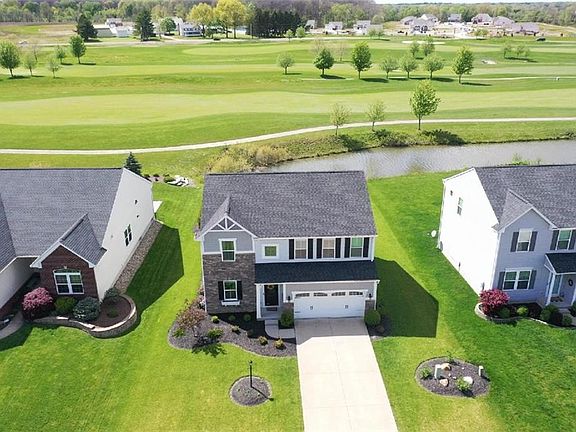 You don't have to be a golfer to love this family-friendly neighborhood where everyone's 3rd vehicle is a golf cart! Socialize with your neighbors during dinner at the club restaurant after a hot summer day at the pool! Only the golf membership is extra, the rest comes with ownership in this popular development! Enjoy views of the 3rd fairway & green from the home's newer composite deck w/retractable awning. Inside you'll appreciate the stacked stone fireplace in the family room, a sunny dining area with beautiful golf course views & a kitchen boasting stainless steel appliances, espresso cabinetry, granite tops & subway tile backsplash. The center island w/granite top & overhang is the perfect place for casual dinners for two! A very comfortable finished rec room, full bath & an office can be found in the basement & plenty of unfinished space remains for storage. No need to find space for workout equipment either, since an exercise room is also an amenity provided by the HOA! A lovely master suite, 3 more spacious bedrooms, full bath & laundry room. (incl. washer & dryer) round out the second floor. Not only is this a great home, but it comes with a lifestyle that is hard to find at such an affordable price! Check out the 3D and aerial tours linked above.