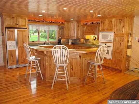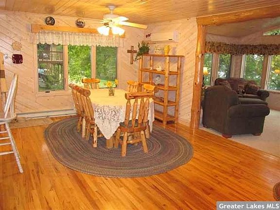 Knotty pine cathedral ceiling & pine walls in large living room, 6 panel doors throughout, beautifully remodeled in 2000, with 2nd floor addition; 4 bed, 2 bath home on 2.65 acre wooded lot, handicapped accessible, hickory cabinets, open staircase, large pantry, 17? x 29? x 4? deep outdoor heated swimming pool (easy to maintain) with solar pool cover & auto pool vac, surrounded by large deck with much seating & 4-person hot tub. 30? x 30? heated, insulated 2-car garage + 1-car garage, tarred driveway, one of only 3 homes on Bobcat Drive (Internet 5895141)