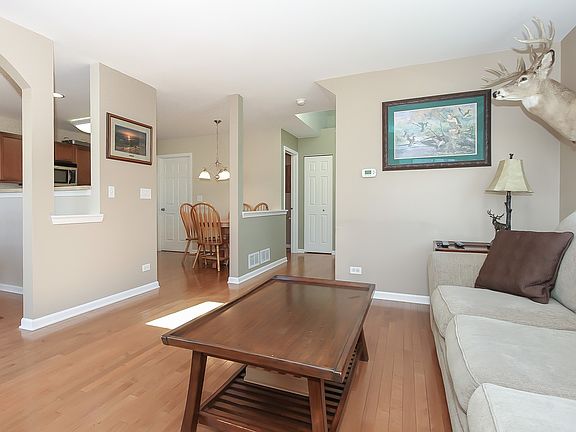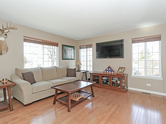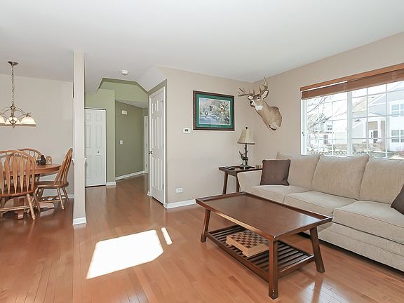 Bright and beautiful END-UNIT with private entrance on a large corner lot. This well-maintained, updated, Nantucket model is move-in ready and features a full, finished, basement! Open up the wood blinds in the cozy living room and let the Sun gleam off the gorgeous hardwood floors throughout the main level. Start your days off at the breakfast table in the centrally-located kitchen, which features stainless-steel appliances and glazed maple cabinets. All three bedrooms are located on the second level and feature ceiling fans and neutral carpet. The master suite includes a private master bathroom with ceramic tile flooring, deep soaker tub, and separate shower. A Recreation Room in the fully finished basement is large and attractive; it's ready for movie night, game day, and everything in-between. There's a surprising amount of storage here as well. Located mere minutes away from grocery, restaurants, entertainment, lakes, Fox River, trails, and much more! WOW, do not miss this home!