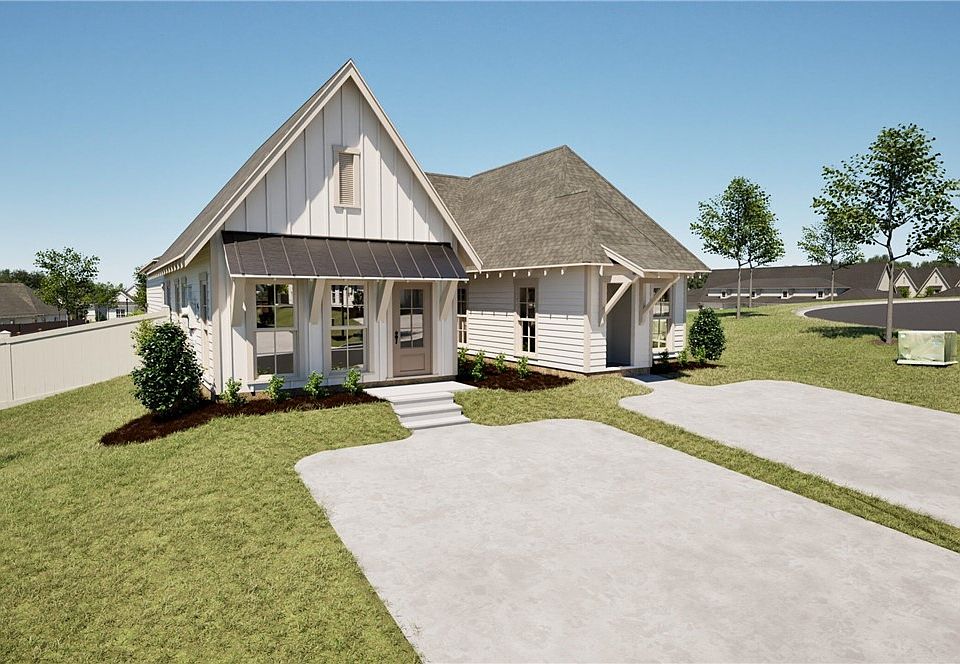 New designer home on Lot 118! The Duette 3B is a two bedroom, two bathroom, 1183 square foot home. As you enter into the home, you enter into the living room that features large windows, vaulted ceilings and a reading nook. The living room leads to the open concept dining room and kitchen that features custom cabinets and a large center island. As you make your way to the back of the home, you will find the guest bedroom and guest bathroom and laundry room. The owners retreat rests on the back of the home and features an en suite bathroom and large walk-in closet as well as access to the back porch and outdoor storage closet. The Exterior Color Scheme for Homesite 118 is Color Scheme #16. Phase 1 amenities include a dog run and fire pit area. Pool, pavilion, and pickleball court to be amenities in a future phase.