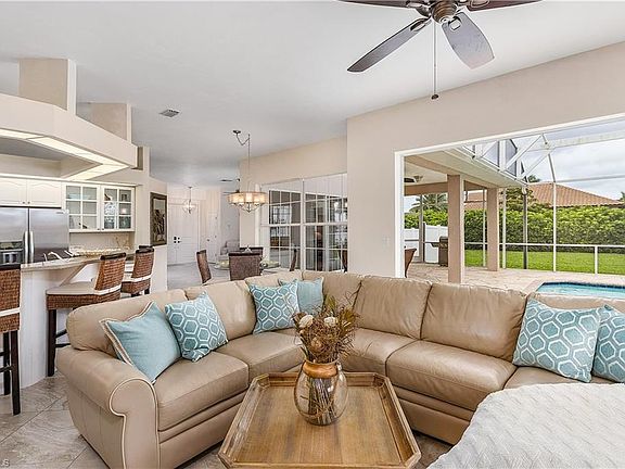 Quick boating access and 127' water frontage on this GULF ACCESS home, offering tons of upgrades and beautiful VIEWS! This home has views to the right of KUHN LAKE and views to the left of CEITUS LAKE. Located on TRIPLE LOT with fences. This 3 CAR GARAGE is everyone's dream. Three POCKET SLIDERS disappear allowing indoor-outdoor living at its best. Chef's kitchen with STAINLESS appliances. Split bedroom design and guest room with en suite bathroom; allows privacy and comfort. HUGE Master walk-in closet and an exquisite 'spa like' master bath offering: NEWLY tiled shower and a Jacuzzi jetted tub. NEW stunning 24" tile (on the diagonal) throughout home, NEW Epoxy garage floor, NEW Trex Captains Walk and Wrap-Around dock with 10K LIFT + electric available, NEW Generator hookup, NEW POOL tile and resurfacing, NEW resurfaced lanai, NEW granite in main bath, NEW travertine vanity and mirror in guest bath, NEW light fixtures and fans, NEW outside lights; all in 2017. City water already in with ASSESSMENT PAID and sewer/irrigation on the way soon. Boating access to the Gulf of Mexico, beaches, & surrounding islands... Easy access to Ft Myers Int'l Airport only about 28 miles away.