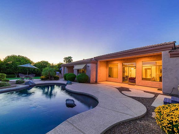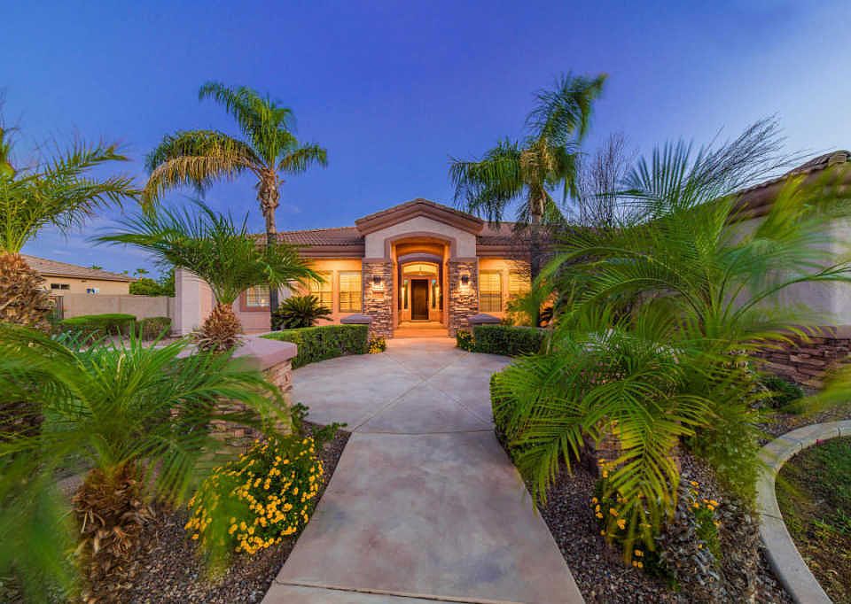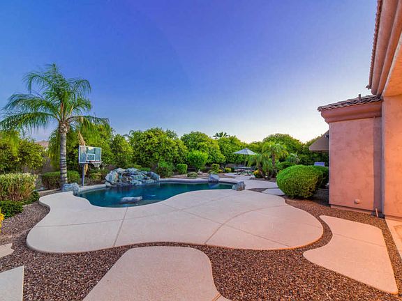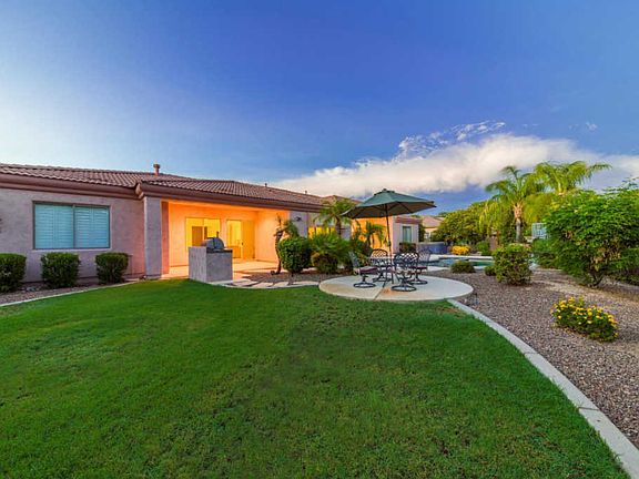 Have you ever had a home unfold like a storybook in front of your eyes? Then come to the highly desirable gated community of Arboleda to unravel this wonderful 5 bed 3.5 bath home on an almost 27,000 sqft lot! An inviting curb appeal of grass and desert landscaping w/ palm & citrus trees buoys your steps deeper to the resplendence found w/i the 3849 sqft of this Toll Brothers home: designer paint, plantation shutters, new framed in windows and elegant light fixtures. Traverse from the formal living & dining rooms w/ fireplace on alternating wood look & carpet flooring and into the huge space shared by the family room and the gourmet kitchen w/white cabinets, island, stainless steel fridge, dual dishwashers, double ovens, microwave, cooktop, breakfast bar with quartz countertops & nook. The picture frame window overlooking the lush back yard sets off the kitchen and gorgeous concrete backsplash designed for it- it's a perfect fit! Check out the new built-in white entertainment center with shiplap trim. Now the huge master bedroom not only comes w/ his/her sinks, separate tub & step-in shower & spacious walk-in closet, it has its own private backyard exit! And what a backyard it is- irrigated lot w/ an assortment of 24 different citrus trees, 2 covered patios, built-in BBQ, paved seating area, grassy area, RV gate and centerpiece sparkling pool w/ aboveground spa! Now, why not let this magical home come alive before you? Come see- or better yet- move in to this awe-inspiring Arboleda home!