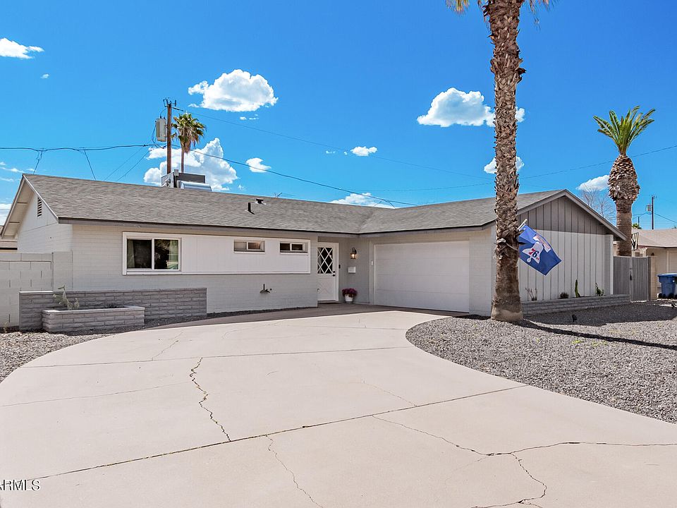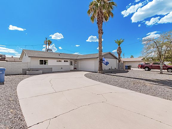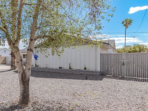 The search is finally over! This charming 3-bed, 2-bath residence features a side-entry 2-car garage and a convenient RV gate. Inside, the great room welcomes you with a fresh palette, attractive wood-look flooring, and sliding doors leading to the backyard for seamless indoor-outdoor living. The kitchen boasts granite counters, white shaker cabinets, a subway tile backsplash, efficient recessed lighting, and sleek stainless steel appliances. The main bedroom offers a private bathroom for added comfort. Venture outside to the backyard, showcasing an open patio, pavers, and natural turf. Convenient freeway access, shopping and entertainment near by. Airport, downtown Phx and other prime locations are all within a short 10-15 min drive. Don't wait, make this house your home today!