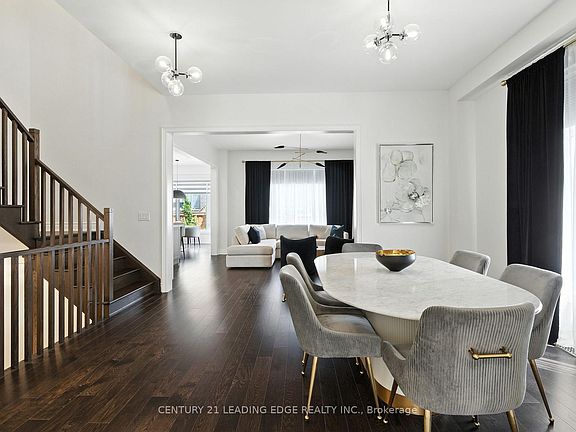 Timeless architecture meets modern comfort. Welcome to 3239 Millicent Ave a recently-built home in one of Oakvilles most sought-after neighbourhoods, offering over 3,000 sq. ft. of total refined living space, from rich hardwood floors, 10-ft ceilings, designer custom features, expansive windows, and a flowing open-concept design ideal for entertaining with a bright and warm living room featuring a gas fireplace. The custom kitchen by AYA Kitchens is a showpiece, featuring stainless steel appliances including a 6-burner gas stove, abundant storage, soft-close cabinetry, and bold black accents. The adjoining breakfast area opens to a newly upgraded, maintenance-free backyard with interlock landscaping. Upstairs, four spacious bedrooms boast new hardwood floors and custom finishes, each with direct access to a bathroom. The primary suite is a serene retreat offering a large walk-in closet and spa-inspired 5-piece ensuite. The finished basement impresses with 9-ft ceilings, wainscoting details, a wet bar, and a versatile room for entertainment with access to a 3-piece bathroom. You will love this area and proximity to top-rated schools, transit, shopping, highways, and parks. Recent upgrades include; backyard interlocking, modern lighting, custom blinds, central vacuum, and fresh paint on main and 2nd floor.