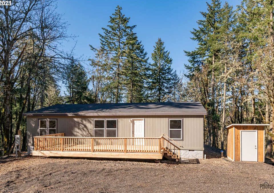 One of the last remaining pieces of acreage where you can hike from your own back yard, yet be only minutes from the heart of Eugene. Home was placed on the property in 2020 & has never been occupied. Open floor plan in main living area. Beautiful kitchen with center island. Master offers large walk-in closet & private bathroom. The main bathroom & two more bedrooms, both with walk-in closets are on the opposite side of the home from the master. Wonderful decks in front & back with wooded views.