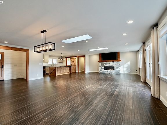 - Features: Fireplace, French Doors, Great Room, Living Room Dining Room Combo, Skylight, Bamboo Floor