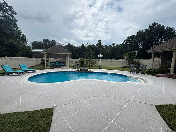 Custom Acadian-Style Home on 4.1 Acres with Pool, Guest House & More! Located just north of Walker, this beautifully crafted home with 3-bedroom, 2.5-bath plus an office offers the perfect amount of southern charm. Boasting 2,777 square feet of living space, this Acadian-style retreat features a large primary suite with its own fireplace, and a thoughtfully designed split floor plan for added privacy. Step inside to find stunning old brick flooring in the kitchen and breakfast with pine wood floor in the living and dining areas. Custom features like triple crown molding and wainscoting take this home to the next level. Just off your back porch, you’ll find an outdoor kitchen, pool, and vinyl fencing that surrounds this beautiful backyard oasis—perfect for relaxing or hosting guests year-round. The property also includes a fully equipped mother-in-law house or guest house and a large workshop, 3 car garage plus attached storage. All set on just over 4 tree-lined acres. With room to roam, this one-of-a-kind property is a rare find.