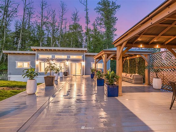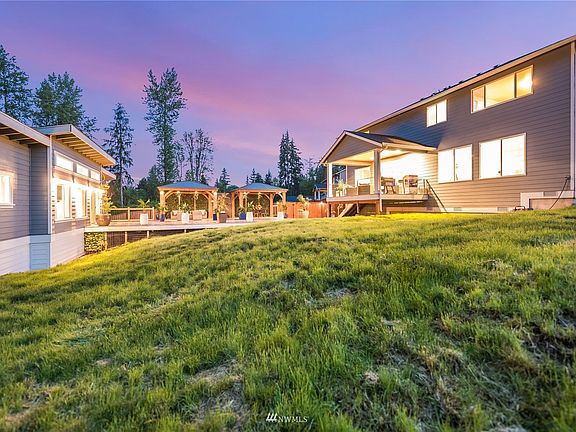 Rare opportunity w/this stunning 4 bed + office/2.5 bath nestled on a 6 acre lot in a gated community. Ideal location offers peace & nature w/out sacrifice: 5 mins to I-5, 10 mins to Stanwood & 10 mins to Smokey Point amenities. Revel in your fully fenced & power gated driveway & yard, gorgeous low voltage lighting & 30x40 Trex deck w/dual cedar 12x14 pergolas, an entertainer's dream! 800 sq/ft custom detached structure coordinates w/home + 16' Tuff Shed painted to match, lots of opportunity! Home boasts 3 car garage, owner's suite w/5-piece bath (large soaking tub, dual sinks, & huge walk-in closet), mood lighting, gas cooking/fireplace, quartz counters, hardwood flooring, oversized windows & NO HOA!