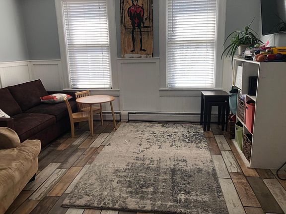 Beautifully renovated 2/2 with tons of built in storage. Laundry Room in private basement. High end appliances with sparkling water maker in the fridge. Backyard with shed for extra storage. Fast transportation to NYC. 5 NJ Transit buses, private buses and ferry travel 30 mins to NYC. They run 24/7. No pets. Must have good credit. Available 4/15/19. Trash, sewer, heat, hot water