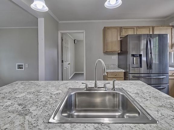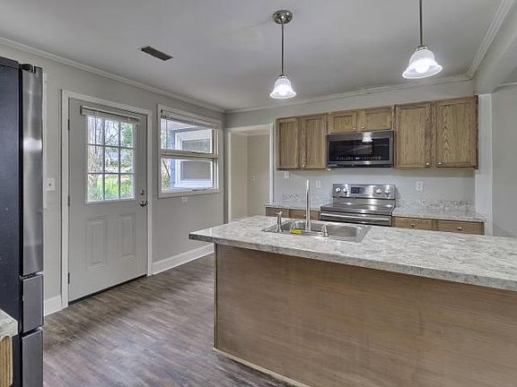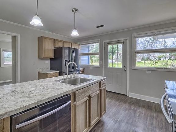 Beautiful 4 bedrooms and 2 baths home with a huge great room to greet you when you walk in the door. This home has a split floor plan with three bedrooms and a bath off the Great room. Formal dining area that also could be used for additional living space as this home features a Beautiful Island kitchen at the Heart of the home which has plenty of room for the family includes updated black stainless steel appliances smooth top stove, over the range microwave, dishwasher, French door Refrigerator, island seating along with eat-in sitting area, also and area for a desk for study time for the kids. Last but certainly not least this home has a spacious master with his and her closets and a private master bath with double sink vanity and separate shower. This home has fresh paint Thorough out, new carpet, and Luxury Plank vinyl in kitchen. This home is located in town on a quiet street within minutes conveniences to all the amenities the town and neighboring towns offer. Home Warranty inc