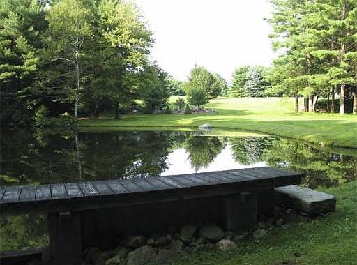 Spectacularly situated on over 10 acres, this immaculately maintained home is a dream.Sit in the screened porch or on the deck and look at the pond and stream, open acreage, and woods. Inside, the open floor plan features a stunning kitchen with custom cherry cabinets, gleaming oak floors, 2 fireplaces, french doors across the entire back of the home that brings the outdoors in. Two master bedrooms, one up and one down. Professionally landscaped with Goshen stone walls, detached barn.