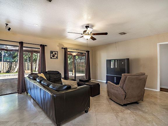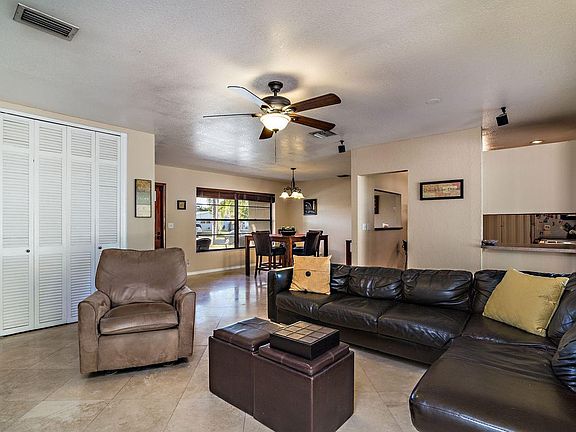 Move right into this immaculate, updated home located in the heart of PBG! 3 bedrooms, 2 baths with great room and large kitchen! Travertine tile floors, hurricane panels, updated kitchen, appliances and bathrooms! Large covered patio with marble pavers and preferred East exposure overlooking private yard and pool. Beautifully landscaped yard with oversized circular driveway. No HOA. Great location in walking distance to elementary, middle and high schools! Close to shopping and restaurants! Pool is empty and needs to be refinished. Garage is shorter than a typical garage because the laundry area is part of the A/C interior space.