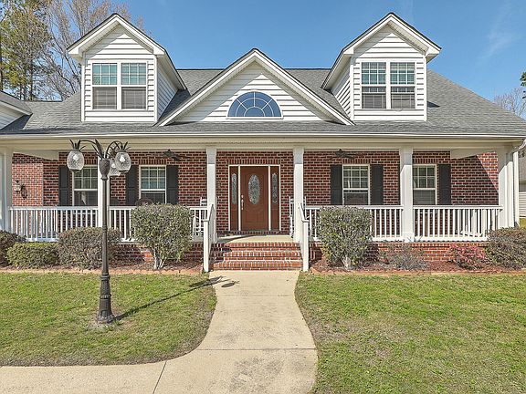 Welcome home to the low-country's hometown! Peaceful cul-de-sac lot on an acre of land. This home boasts tons of upgrades throughout. Full front porch, Lot backs to woods, Stunning wood beams, Vaulted ceilings, Large back patio, Custom trim work, Large fireplace with custom built-ins, Irrigation, All brick construction, Dual masters, Double ovens, Large kitchen island, mature landscaping, Two and a half car garage for extra storage and so much more. This beautiful home is a rare find. Attention to detail is seen throughout the home. The driveway has ample parking for at least eight cars! The large front porch welcomes you! Once you enter the home you will be greeted by a gorgeous light filled foyer, soaring ceilings, and custom wood beams. On the main floor, you'll find a private study, powder room, an open concept Great room and a beautiful kitchen with granite countertops, a propane cooktop, and a spacious pantry. The Master suite is truly an escape after a long day, complete with its own sitting room. The en-suite has a large soaking tub, walk-in shower, dual vanities, separate water closet, and a massive walk-in closet. The closet space in this home is sure to impress. All bedrooms are large and have multiple closets. There is also finished attic space for all your holiday decorations. Upstairs you will find two more bedrooms and two full baths, one of those is your second master suite! Above the garage is a large bonus room that could serve as a fourth bedroom, play room, media room, or man cave. This home was designed to entertain. The open concept, large rooms, florida room off the living room for even more space, the large back patio and HUGE yard are perfect for hosting birthday parties,and BBQs! Or, just enjoy a cup of sweet tea and the peace and quiet! Come tour this southern charmer today, this is home!