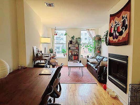 Spacious and Bright 3rd floor one bedroom apartment 2 blocks away from Atlantic Ave Barclays Center with 9 subway lines. Covering over 700 sqft with North and South exposures, this apartment gets consistent light throughout the day. The large living room faces the front of the building and has a great layout to set up all your furniture pieces. A formal dining table can easily fit right next to the kitchen area. There is a working gas fireplace to enjoy during the winter months. The open kitchen has plenty of cabinet and counter space, and comes with a dishwasher. The rear-facing King sized bedroom provides you with plenty of peace and quiet and its south-facing windows let in plenty of light. The huge Bedroom measures 19.9" x10'7' and can easily fit a king size bed, a sofa, dresser, home office and more! There are 2 large closets in total. One in the living room and one in the bedroom. Plenty of room in the hallway to add additional storage pieces if needed. Hardwood floors throughout and tiled bathroom with a tub The coin operated washer and dryer are located in the basement. A large private locked bin is also included for additional storage needs. Pet Friendly Tenants pay for all utilities Located 2 blocks from the Atlantic Ave Barclays Center subways 2,3,4,5,B,Q,N,R,and D lines, the LIRR and Barclays Center. Lots of cafes and restaurants all around the vicinity.