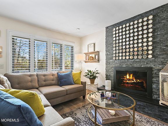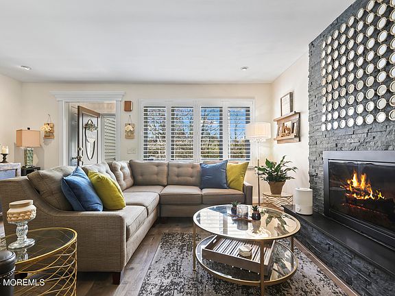 A unique property located in Monmouth County's hidden gem of Shark River Hills. Fashionably updated and meticulously maintained, this 3/4 bedroom 2 1/2 bath split level offers comfort and versatility. Living Rm boasts a sleek floor to ceiling stone fireplace and natural light from a large window with plantation shutters. Modern Kitchen with SS Appliances and Granite Counters is open to the Dining Rm. Glass sliders lead to the Trex Deck with retractable awning. A few steps down to a lower level Den with built-ins and ½ Bath. 2nd floor features a Primary Bdrm with Full Bath, another Full Bath and 2nd Bdrm. HW floors below all carpeting. A 3rd level with another Bdrm and Bonus Rm with skylight could be a 4th Bdrm. Professionally landscaped fenced backyard includes a side lot for xtra parking A convenient location close to beaches, marina and major roads makes this a great place to live.